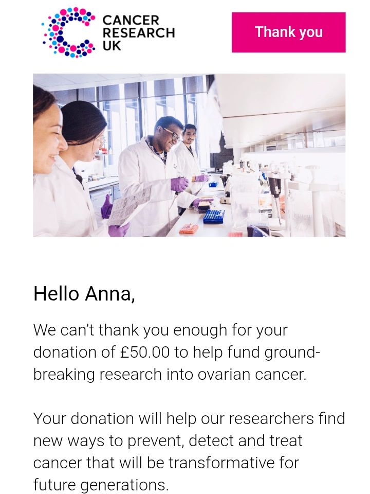 Thank you to Alistair, Will, Rodney, Lorraine and Iain for your recent custom! Together you have raised £90 for Cancer research UK.