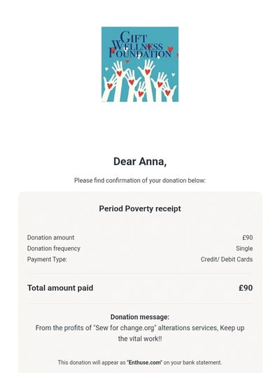Thank you Michelle and Rodney for your continued support! £45 donated to Period poverty UK.